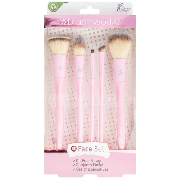 Level up your makeup look with the Brushworks HD Complete Face Set. The makeup brush set collates six luxuriously soft complexion brushes, perfect for applying foundation, concealer, setting powder and cheek colour.