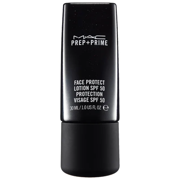 The MAC Prep + Prime Face Protect SPF 50 is a lightweight, antioxidant-rich sunscreen lotion that provides broad spectrum UVA and UVB protection with additional skincare benefits for a multi-tasking action.