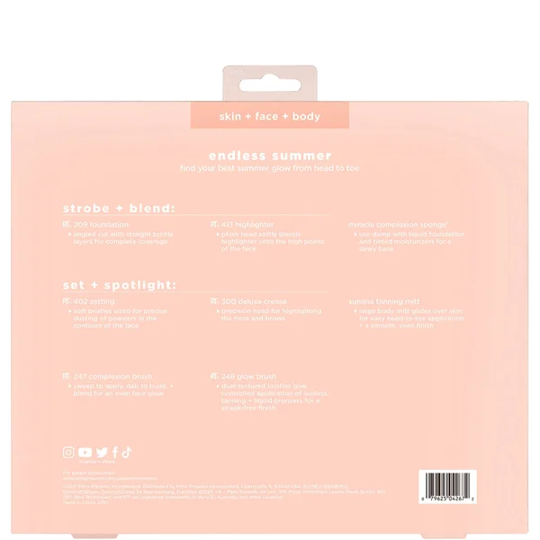 Starring seven complexion brushes and a sunless tanning mitt, the Real Techniques Endless Summer Glow Brush helps to illuminate the skin from head to toe. Each brush is crafted with UltraPlush™ synthetic bristles that work harmoniously with a range of textures, making the set the perfect accompaniment to your beauty rituals.